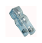 Abrazadera zincada con perno y tuerca con sistema de anclaje para canalización de instalaciones eléctricas.