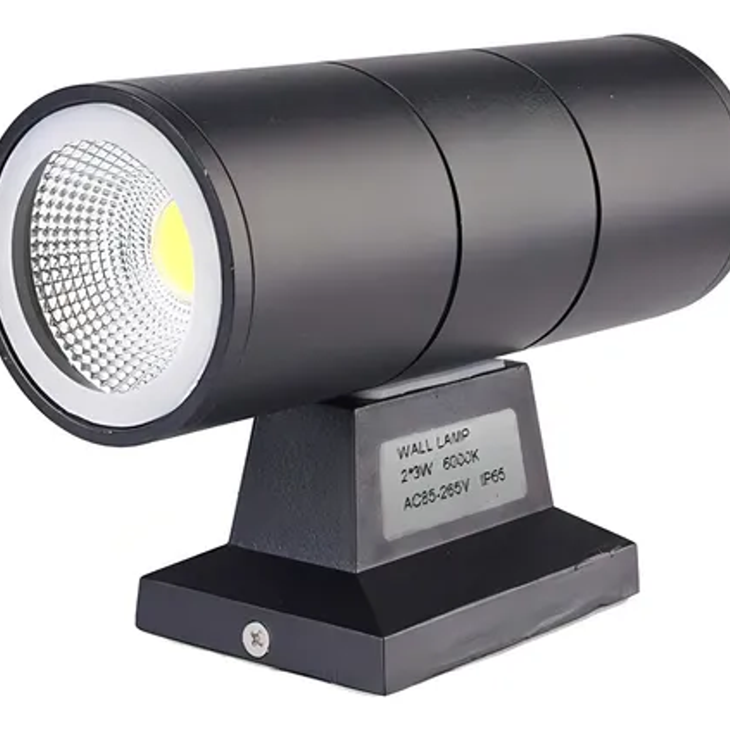 Su diseño cilíndrico en metal garantiza durabilidad y resistencia a las condiciones climáticas, asegurando un rendimiento óptimo a lo largo del tiempo. La instalación en pared permite un fácil posicionamiento, ofreciendo versatilidad en la decoración y funcionalidad.
